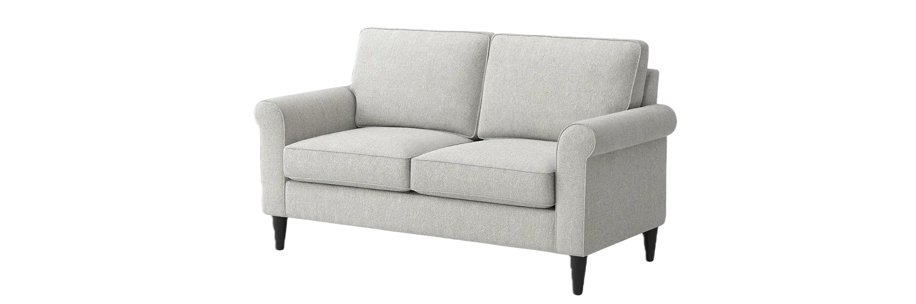 Divano a due posti in tessuto grigio con cuscini rimovibili